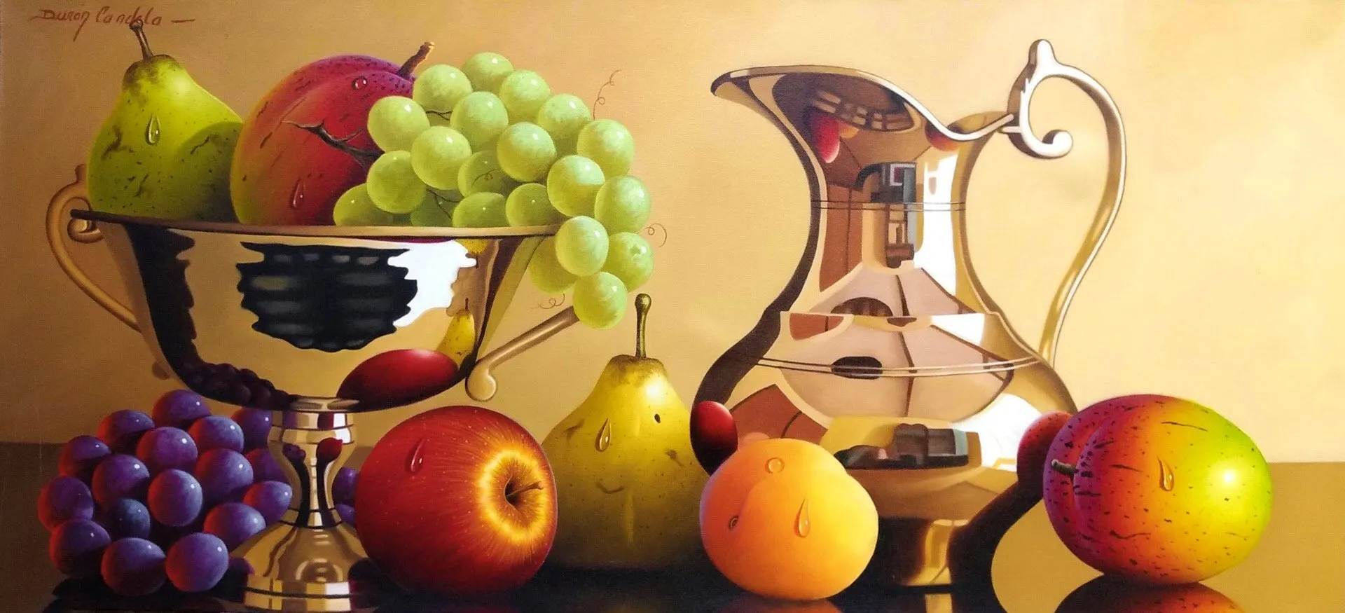 Still-Life-Bronze-Jug-and-Fruit-Bowl-Oil-Painting