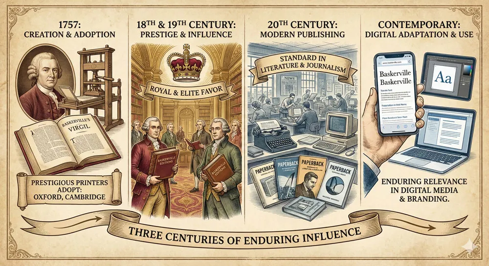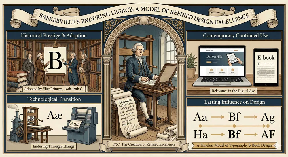 As printing evolved and desktop publishing emerged, Baskerville was digitized and adapted for contemporary use.