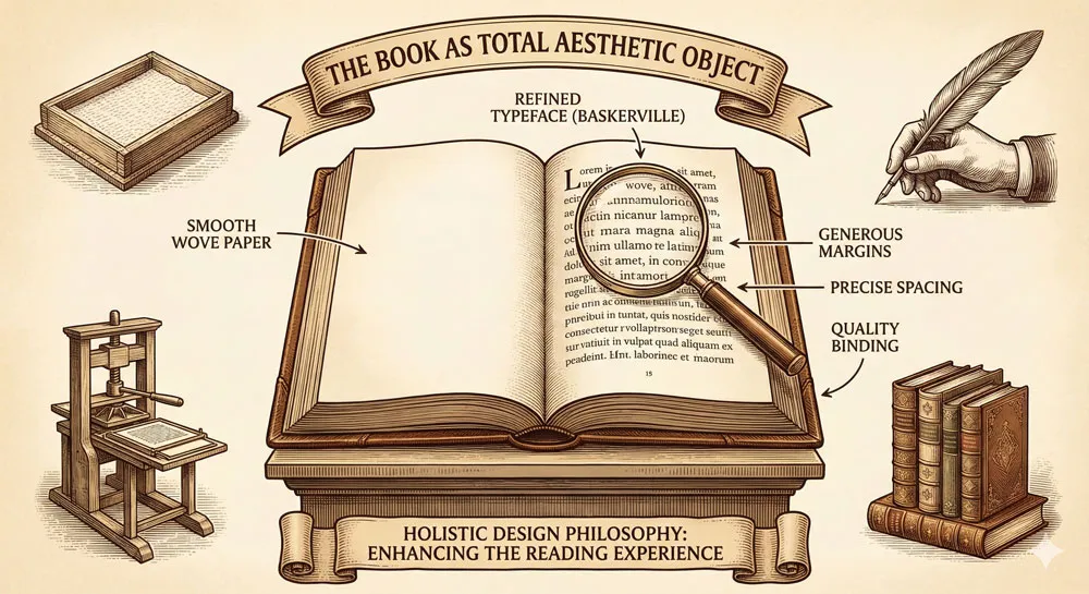 He considered every element of book productionโ€”from margins to paper quality to bindingโ€”as contributing to the overall aesthetic and functional achievement.