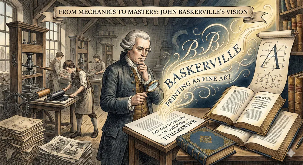 In the early eighteenth century, as printing had become established for nearly three centuries, a printer and typographer named John Baskerville developed a vision of transforming printing into an art form.