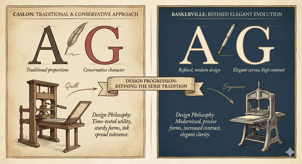 Baskerville vs. Caslon: The Contrast Between Refinement and Tradition