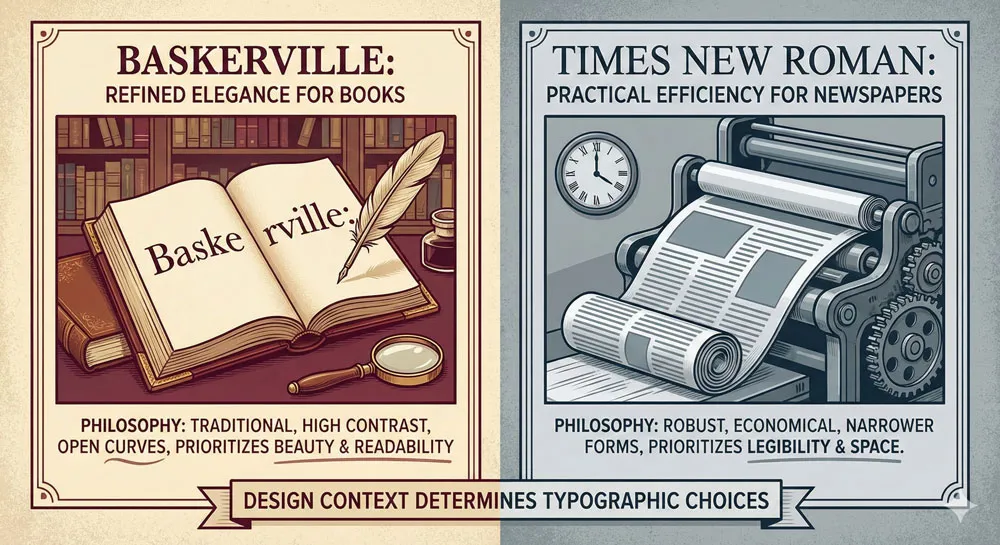 Baskerville vs. Times New Roman: Classical Elegance vs. Commercial Practicality