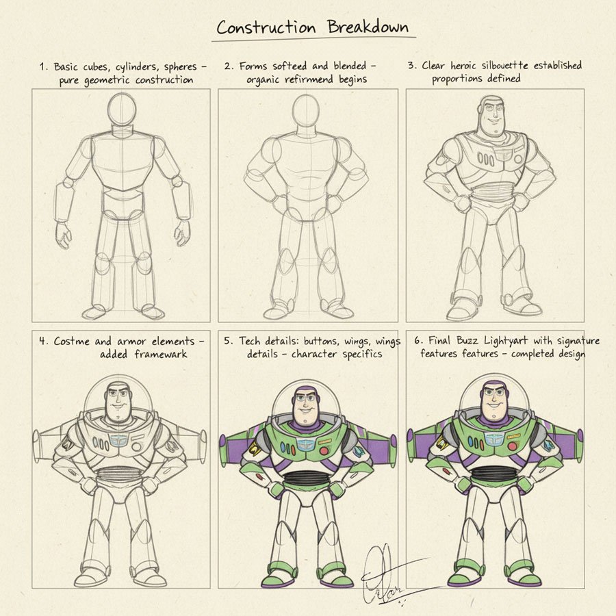 Even in modern Disney and Pixar films, where everything is rendered digitally, the animation process still begins with shape blocking. Artists don’t start by modeling detailed characters in 3D software. They start with rough shape sketches, sometimes called “silhouette tests,” where they make sure the character reads clearly as a collection of basic forms.