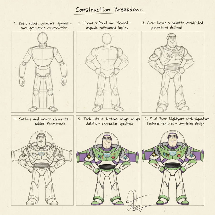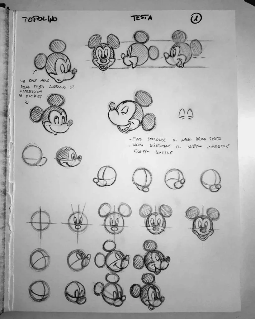 The earliest Disney sketches reveal something fascinating: the fundamentals haven’t changed. Looking at Ub Iwerks’ original Mickey drawings from the 1920s, you see the same circle-based construction modern animators use today. The technology has transformed completely—from hand-drawn cells to computer animation—but the underlying shape language remains constant.