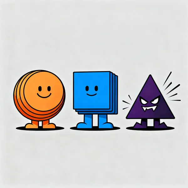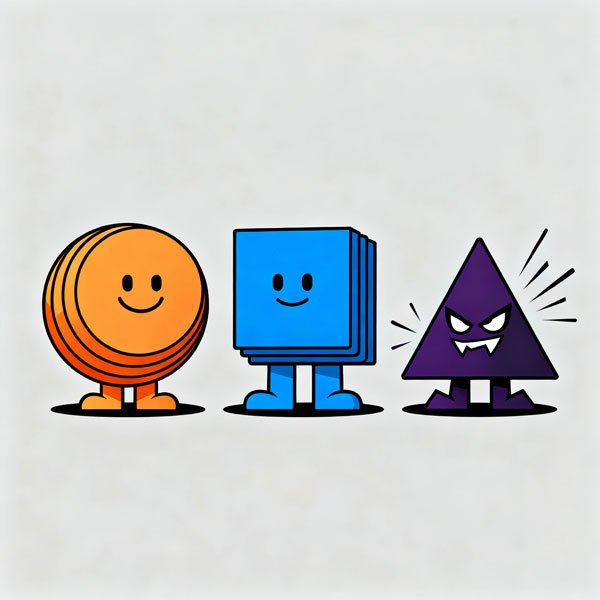 Triangles are the wild cards of shape language. They’re sharp, directional, and inherently dynamic. While circles invite hugs and squares suggest stability, triangles scream action, danger, or speed. This makes them perfect for villains, dramatic poses, and anything that needs visual energy.