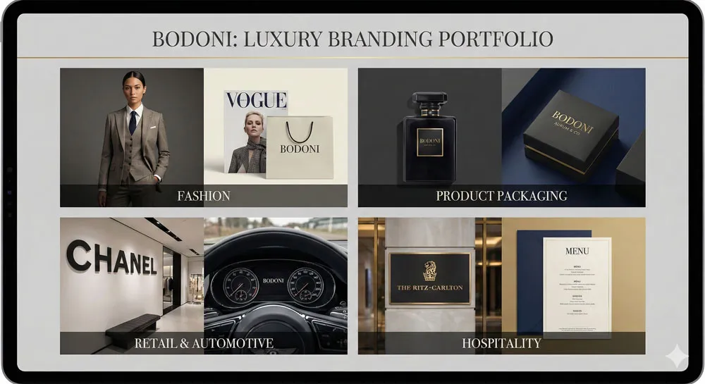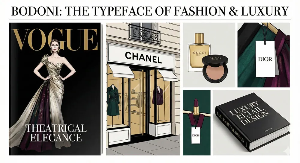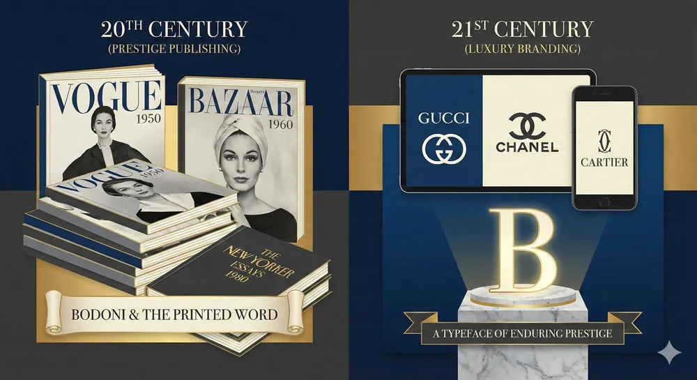 In contemporary contexts, Bodoni has become a primary typeface for luxury branding and high-end design. Luxury brands use Bodoni to communicate sophistication, exclusivity, and design excellence.