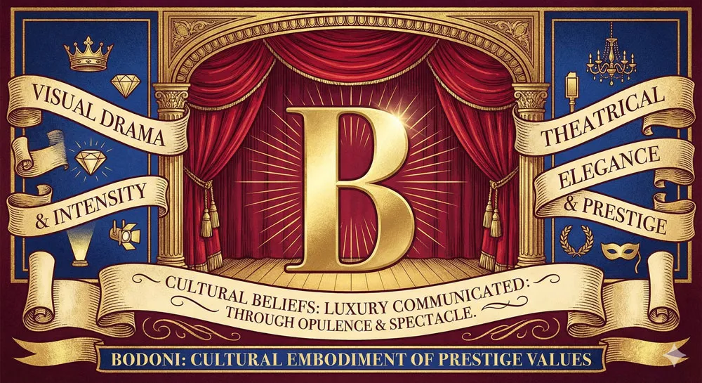 A: Bodoni’s theatrical elegance and visual intensity communicate prestige. The typeface appears in luxury publications, luxury branding, and high-end contexts. This repeated association in prestige contexts has made Bodoni culturally synonymous with luxury and prestige.