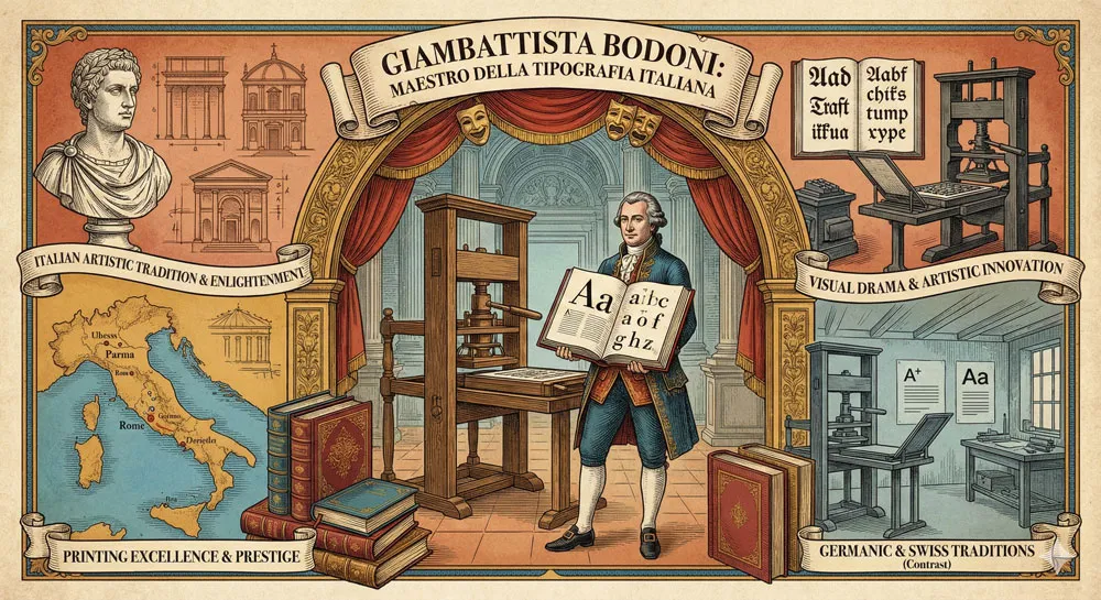 Giambattista Bodoni was a central figure in Italian printing culture. Bodoni represented a specifically Italian approach to typography and printingโone that valued drama, visual sophistication, and artistic innovation.
