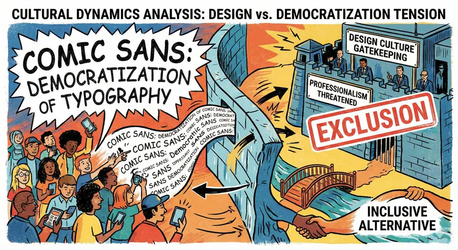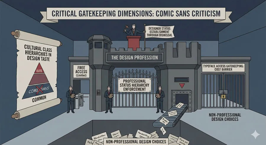• Economic gatekeeping – Comic Sans is criticized partly because it is free and accessible, threatening professional gatekeeping based on expensive, exclusive typefaces.