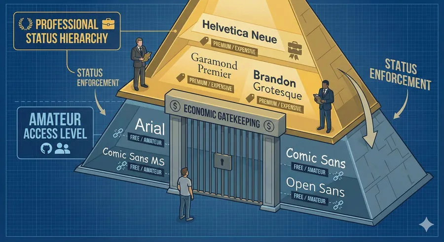 This economic gatekeeping creates hierarchies: expensive typefaces are considered more professional, more sophisticated, more appropriate. Free typefaces are viewed with suspicion as amateur or low-status choices.