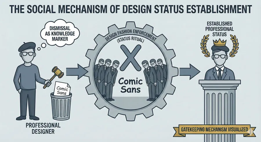 Comic Sans criticism reflects design fashion and professional status establishment. By dismissing Comic Sans, designers establish their design sophistication and professional standing. Despising Comic Sans becomes a marker of professional design knowledge.