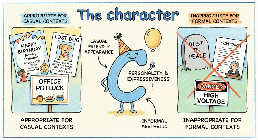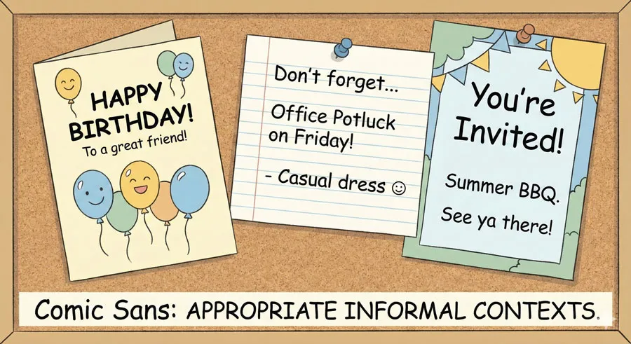 Comic Sans is genuinely appropriate for casual, informal, friendly communication. Children’s materials, greeting cards, birthday invitations, casual documentsโ€”these are contexts where Comic Sans works well.