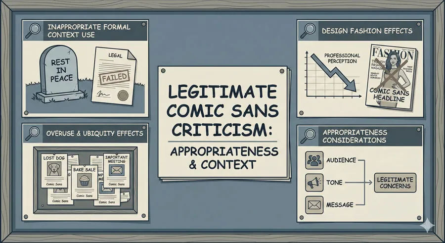 While some Comic Sans criticism reflects legitimate concerns about inappropriate use, much criticism reflects fashion rather than objective design evaluation. Comic Sans criticism has become so fashionable that designers criticize the typeface reflexively without considering appropriateness or context.