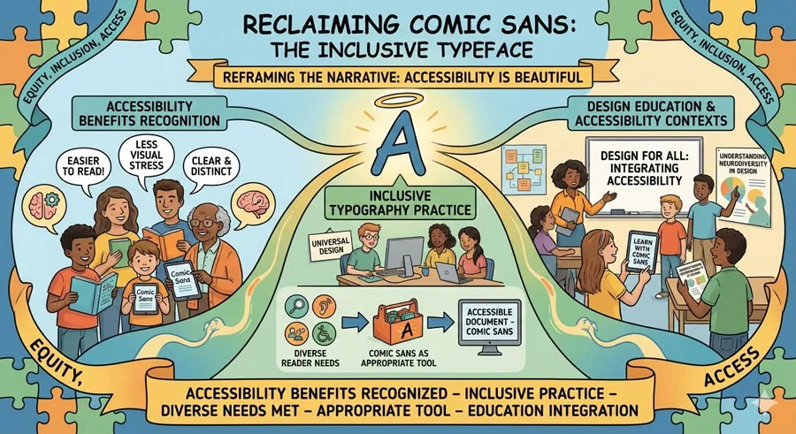 Some designers and accessibility advocates have begun reclaiming Comic Sans. Rather than dismissing the typeface, they highlight accessibility benefits and appropriate use contexts.