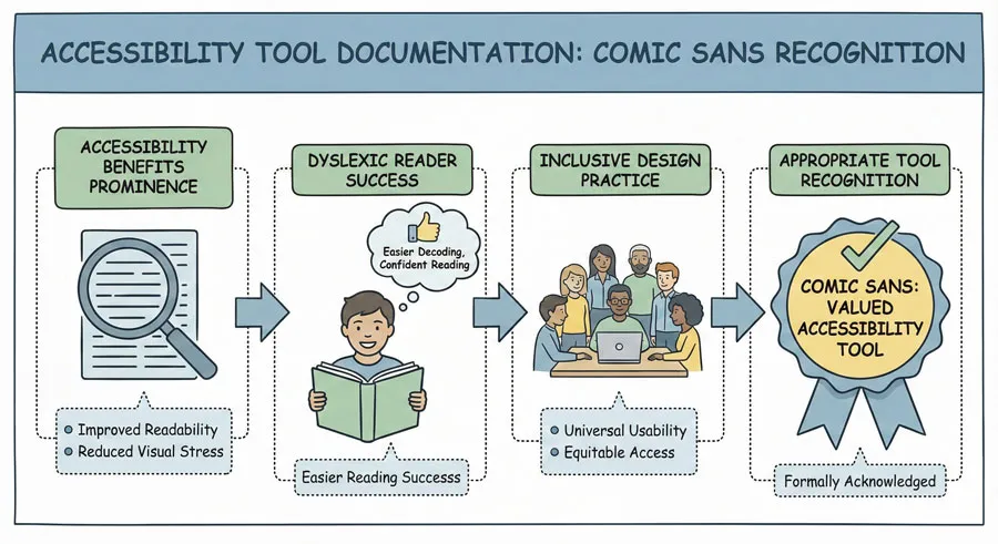 This reclamation suggests that Comic Sans deserves recognition as legitimate accessibility tool rather than dismissal as design failure.