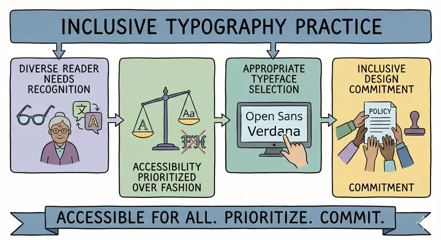 Inclusive typography practice requires recognizing that different readers have different needs. A typeface that is unfashionable among design professionals might be ideal for specific readers.