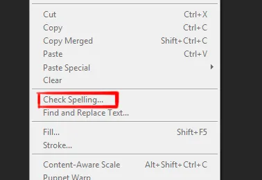 Edit menu in Photoshop