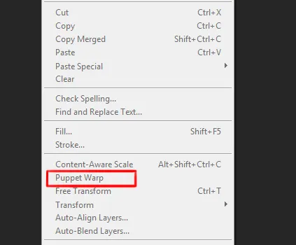 Edit menu in Photoshop