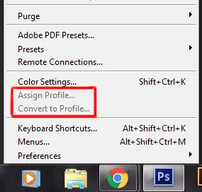 Edit menu in Photoshop