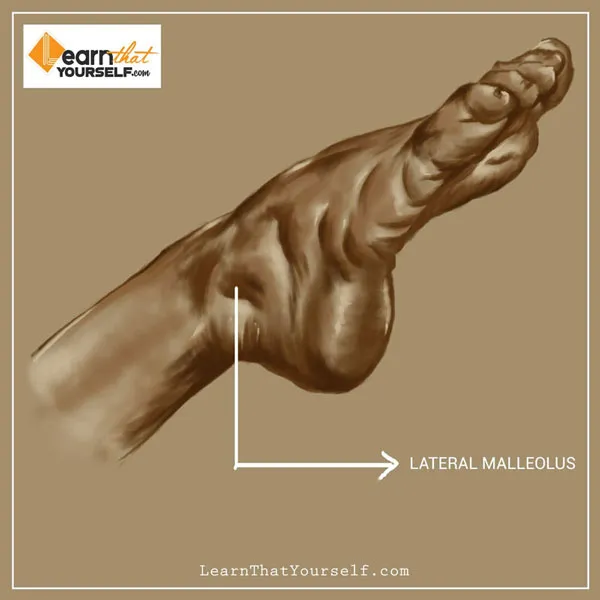 In the image, the shadow comes down the calf around the lateral malleolus of the ankle and visually unites the calf with a foot.