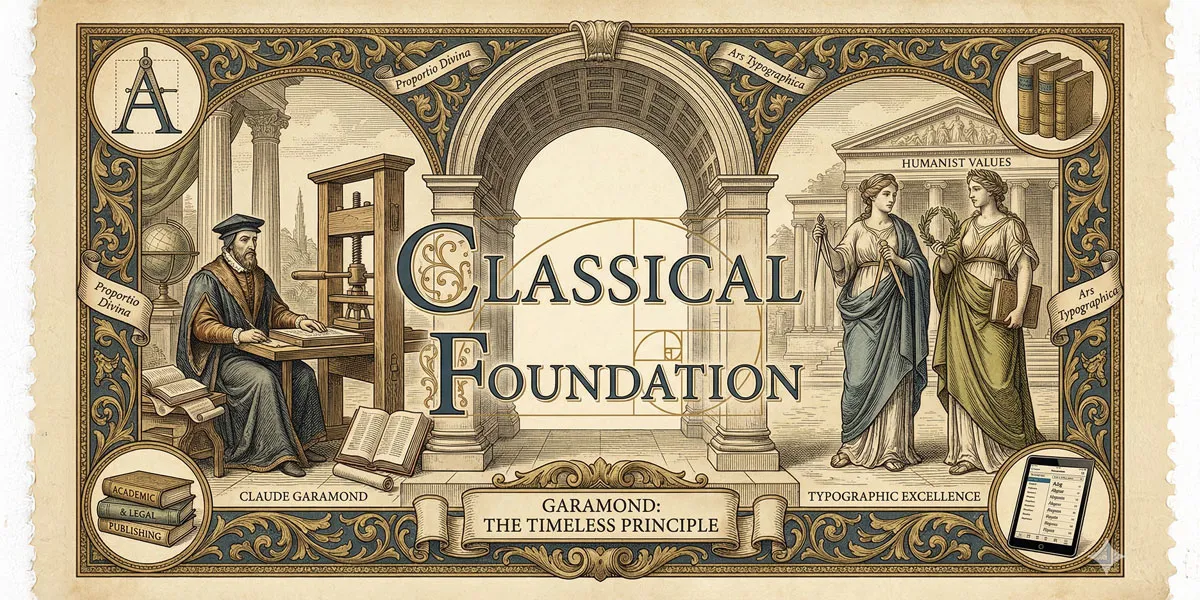 Few typefaces possess foundational significance comparable to Garamond. Designed by Claude Garamond in sixteenth century, Garamond represents culmination of classical typographic principles and foundation of Western serif typography.