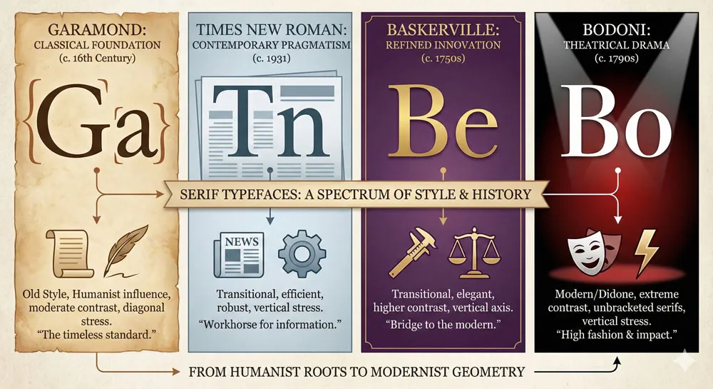 Garamond vs. Bodoni: Classical Restraint vs. Theatrical Drama