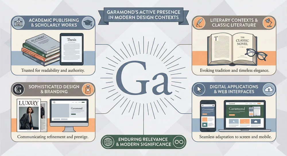 Contemporary designers often select Garamond specifically because of its classical heritage and timeless quality. Using Garamond communicates that a designer understands typography history and values classical principles.