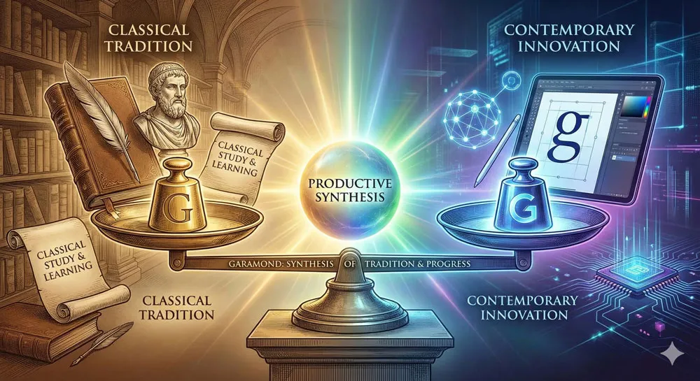 Garamond represents a productive balance between respecting classical traditions and pursuing contemporary innovation. Garamond studied classical principles while creating new, contemporary typefaces. This combination of classical learning and contemporary innovation created something enduring.