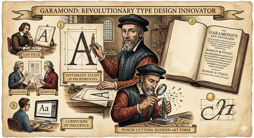Garamond demonstrated that punch-cutting and type design could be elevated to an art form based on principles and understanding rather than mere copying.