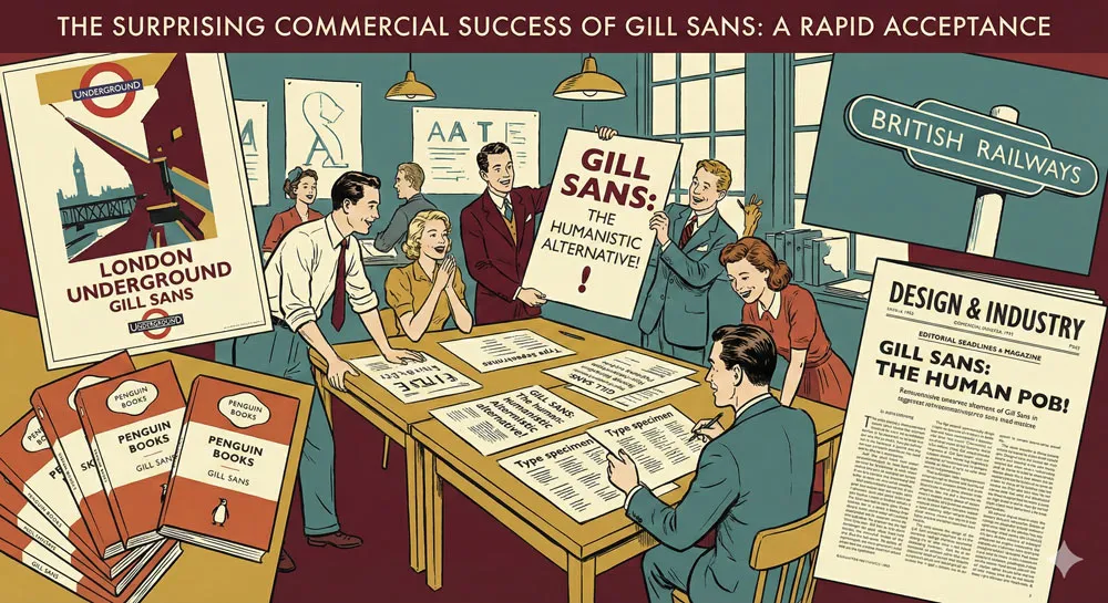 Gill Sans’ success demonstrated that there was significant market demand for a humanistic sans-serif alternative to purely geometric modernist typefaces. The typeface appealed to designers and organizations wanting contemporary design that didn’t sacrifice warmth or personality.