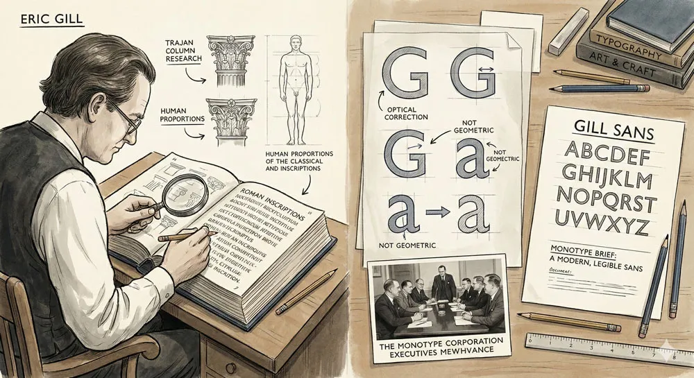 In the late 1920s, as geometric modernism was reaching its peak with typefaces like Futura (1927) embodying pure geometric rationality, a British typographer and designer named Eric Gill was developing a fundamentally different approach to typeface design.