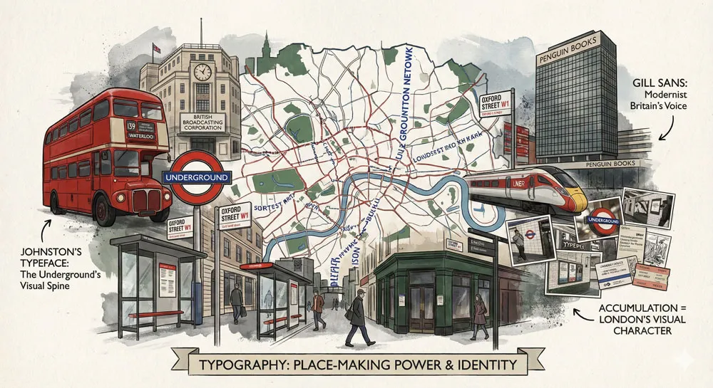 Edward Johnston and Eric Gill’s work on the London Underground and the subsequent development of Gill Sans demonstrate something profound: typography is not merely aesthetic ornament but civic infrastructure.