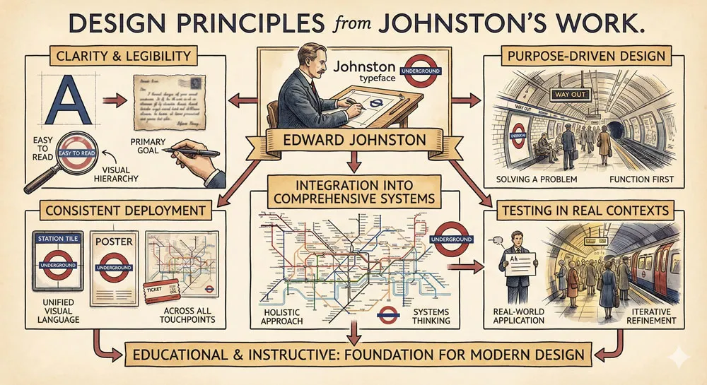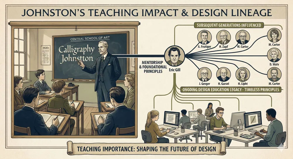 Johnston’s work at the Central School of Art influenced countless designers through teaching. Gill learned from Johnston and subsequently influenced subsequent generations. The Underground project demonstrates the value of good design education and the importance of master-apprentice relationships in design culture.