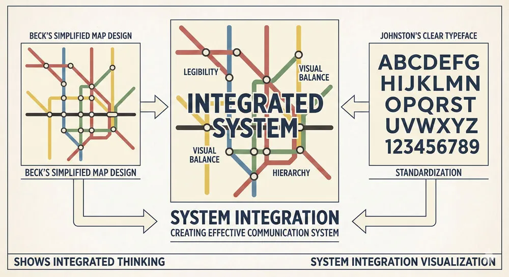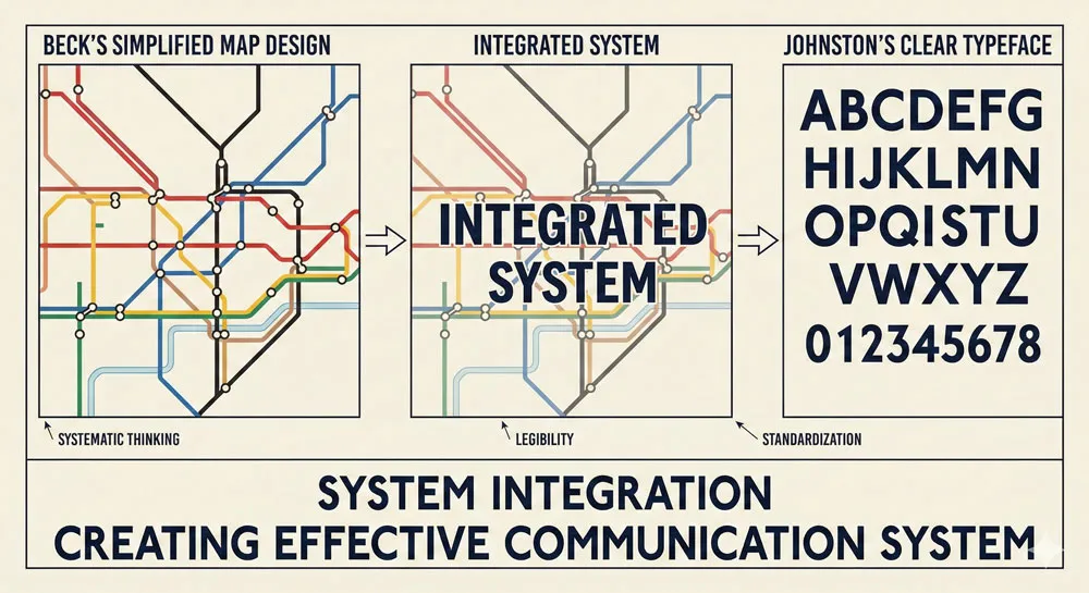 The combination of Johnston’s typeface with Beck’s map design created an integrated system where typography and graphic design worked together to communicate complex information clearly.