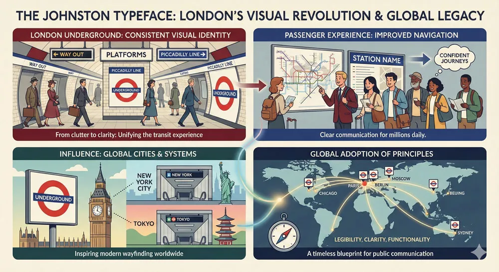 More broadly, Johnston’s approach influenced how public transportation systems worldwide approached typography and signage.