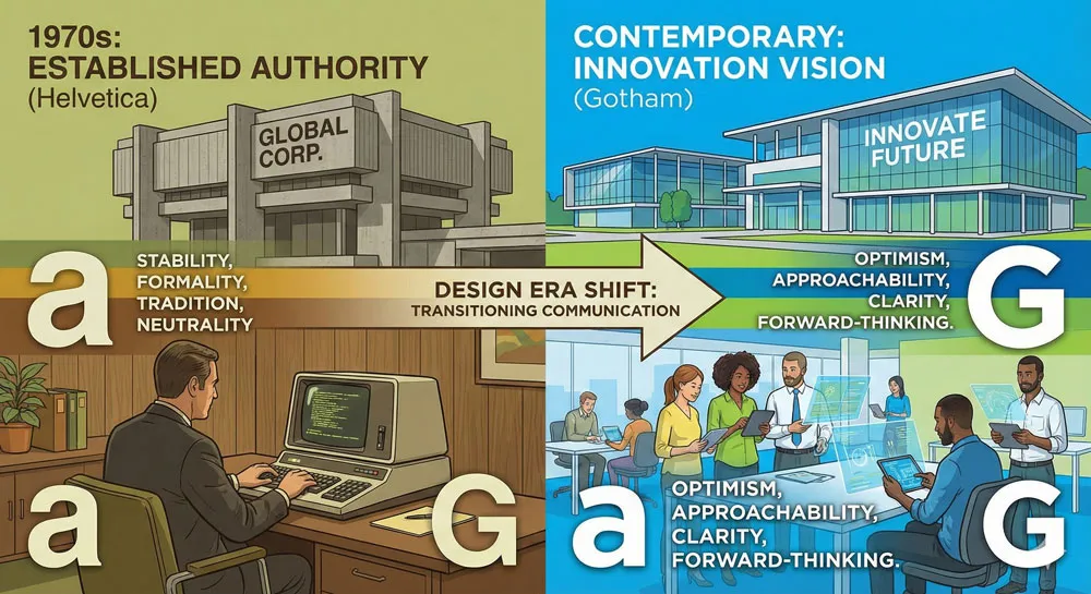 Designers recognized that Helvetica, while still powerful and widely used, felt somewhat datedโtoo associated with 1970s corporate America and institutional conformity.