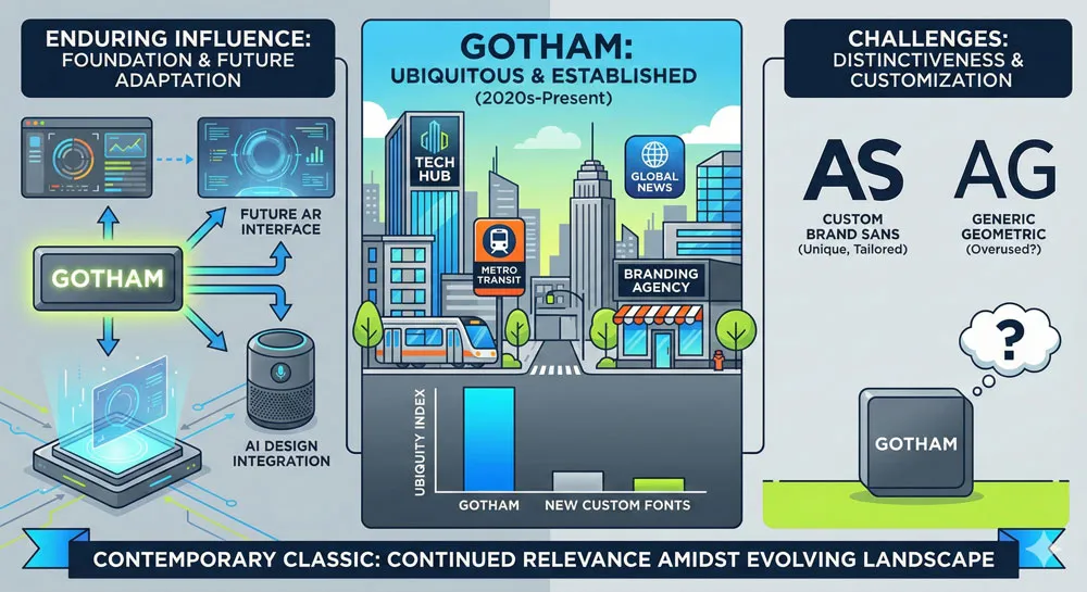Looking forward, Gotham will likely remain a significant typeface in contemporary design. The typeface has achieved the status of a contemporary classic.