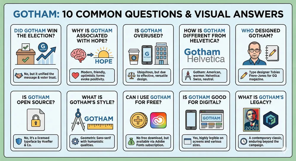 The most iconic campaign imageโShepard Fairey’s “Hope” posterโwhile not using Gotham specifically, existed within a visual aesthetic that aligned perfectly with Gotham’s characteristics.