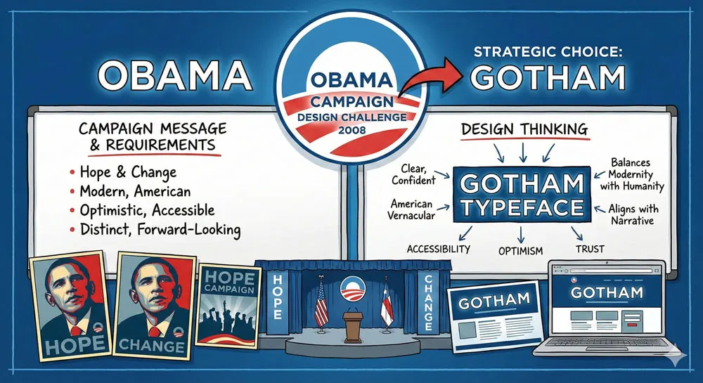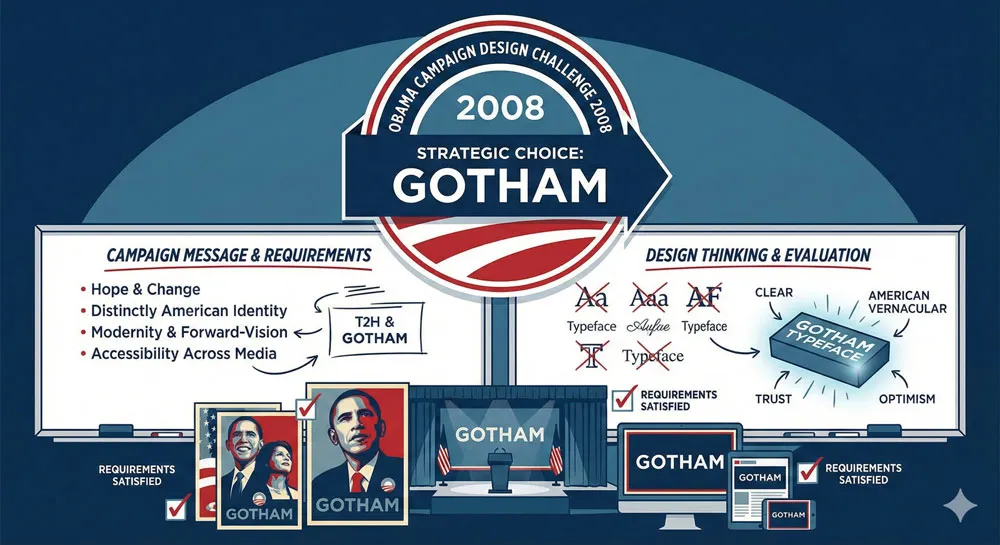 When the Obama campaign selected Gotham for their visual identity, they were making a choice aligned with broader cultural and design movements toward contemporary geometric sans-serifs that communicated American confidence and progress.