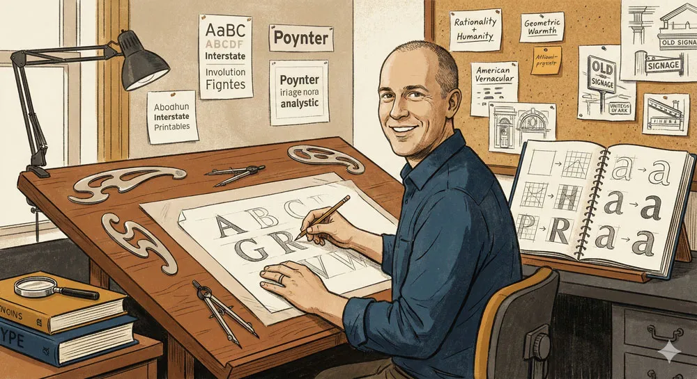 He examined historical signage and architectural lettering. He researched how geometric forms communicate confidence and modernity.