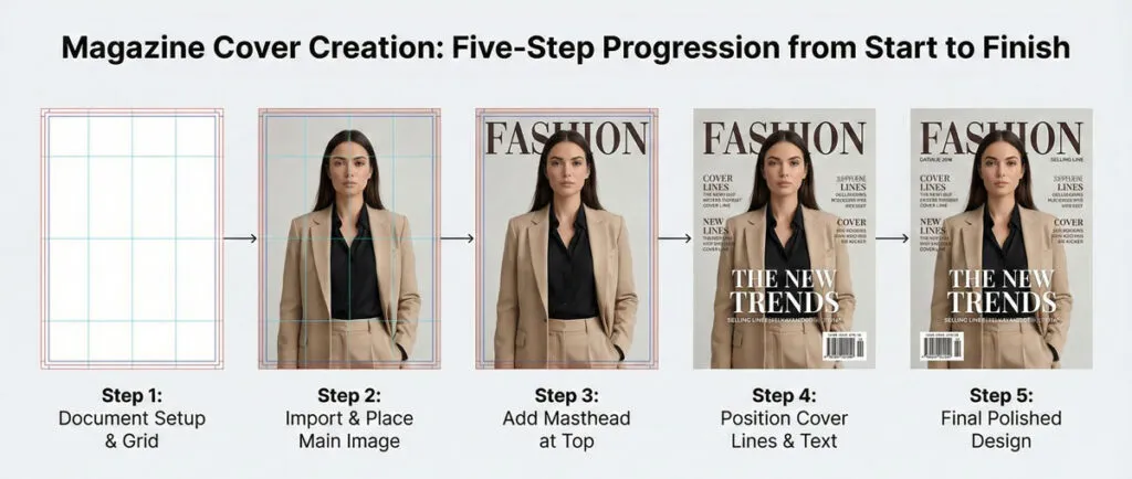 This comprehensive guide walks you through the complete magazine cover design process, from understanding every element of a cover’s anatomy, to planning your concept, to executing it step-by-step in your design software, to testing and exporting.