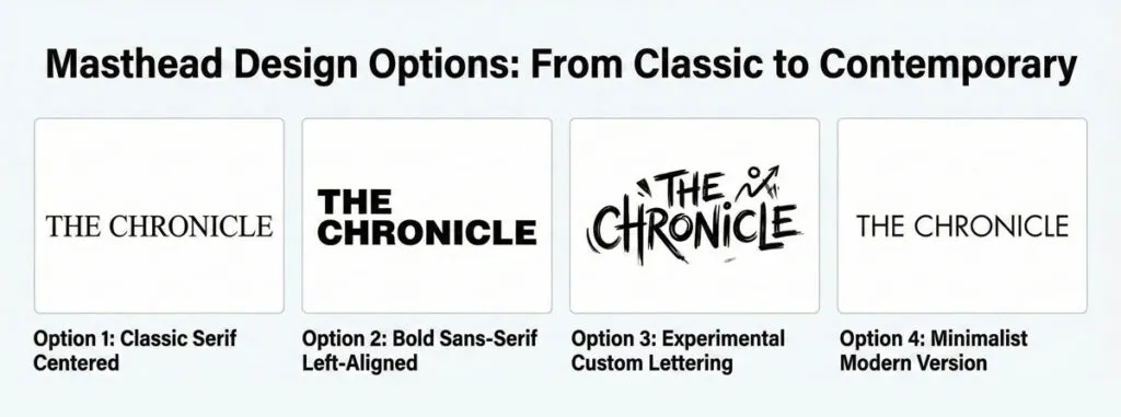 The magazine’s name, usually the largest typographic element on the cover. The masthead is the brand anchorโit must be consistent across all issues and immediately recognizable.