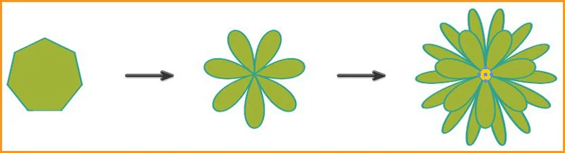 Then move the new shape to the center of the flower petals. Now we have our second flower ready.