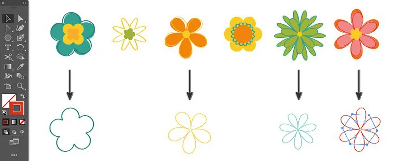 Remove the Fill color and we can change the stroke colors. Then Group each flower set together by using shortcut CTRL + G.