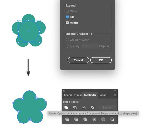 Now, we will expand the path: Object > Path > Expand.