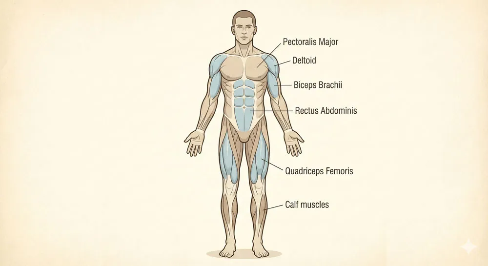 - It’s not about memorizing Latin names – You don’t need to know that the “rectus femoris” is the quadriceps. You just need to know that the thigh has a muscle group that creates a specific visual shape.