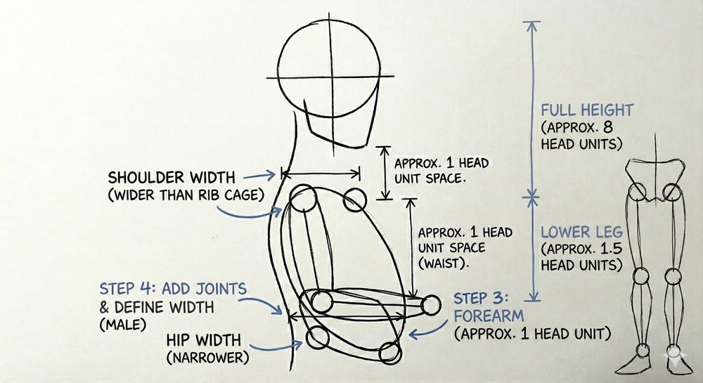 Important note for beginners: The basic skeleton and proportions are the same between genders. The main differences are: