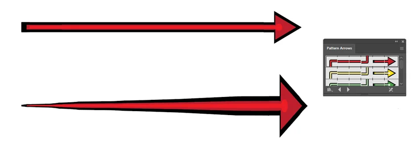 However, if we open the menu in the upper right corner of the panel and go to Open Brush Library > Arrows > Pattern Arrows, we’ll have a chance to experiment with brushes that don’t have this problem.