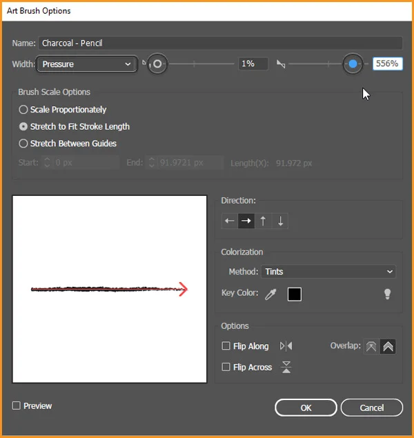 Select the brush in the third row now — “Charcoal – Pencil” an example of an Art Brush.