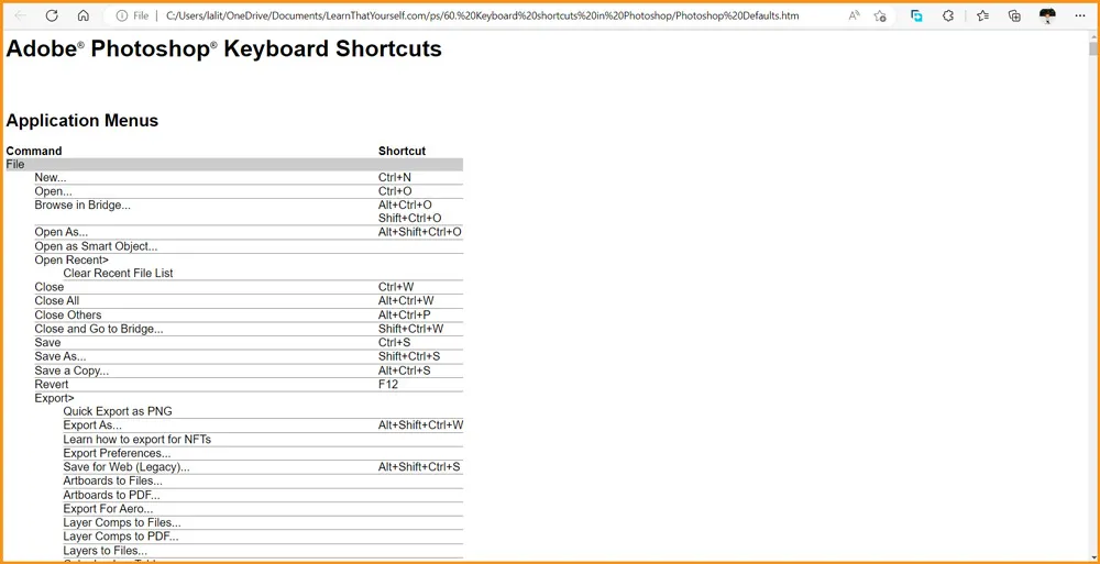Keyboard Shortcuts in Photoshop
